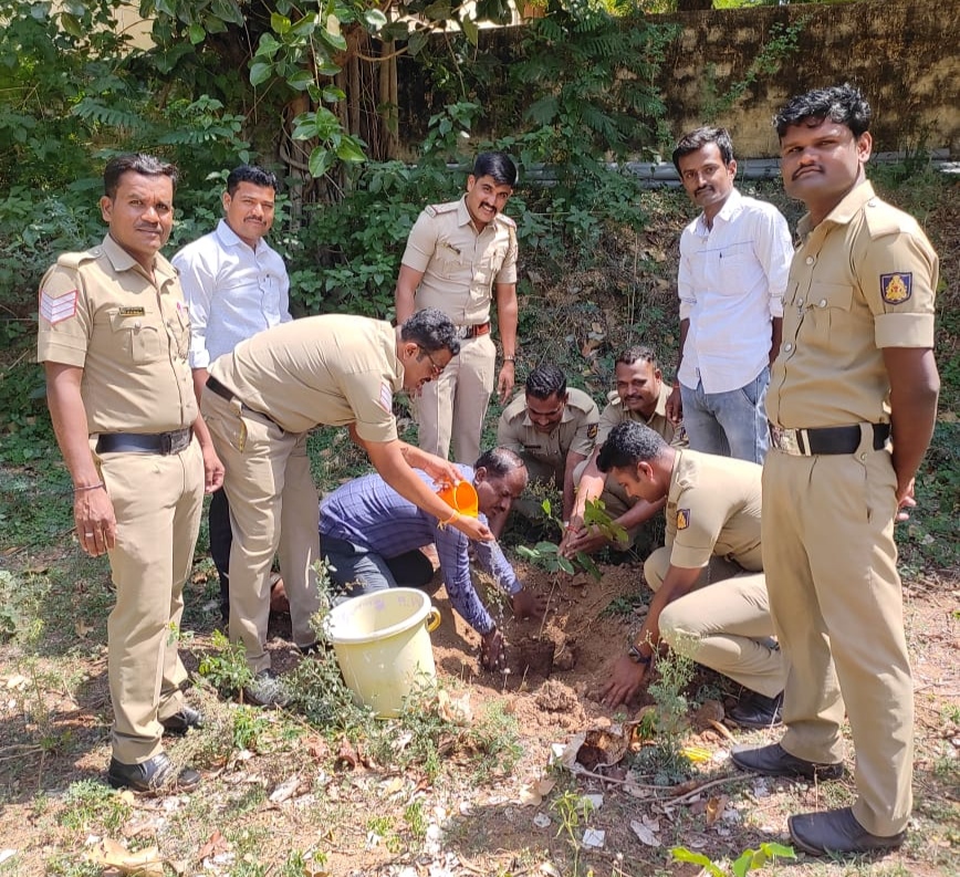 ತಾವರಗೇರಾ:- ವಿಶ್ವ ಪರಿಸರ ದಿನಾಚರಣೆ ಅಂಗವಾಗಿ ಸ್ಥಳೀಯ ಪೊಲೀಸ್ ಠಾಣೆಯ ಆವರಣದಲ್ಲಿ ಪಿಎಸ್ ಐ ತಿಮ್ಮಣ್ಣ ನಾಯಕ ಸಸಿ ನಡುವ ಮೂಲಕ ಪರಿಸರ ದಿನಾಚರಣೆ ಯನ್ನು ಆಚರಿಸಿದರು.