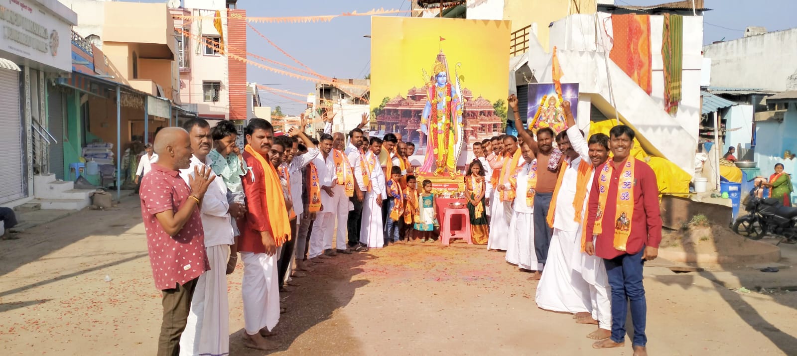 ಪಟ್ಟಣದ ಪ್ರಮುಖ ಬೀದಿಗಳಲ್ಲಿ ಶ್ರೀರಾಮನ ಭಾವಚಿತ್ರ ಮೆರವಣಿಗೆಯು ಅದ್ದೂರಿಯಾಗಿ ನಡೆಯಿತು.